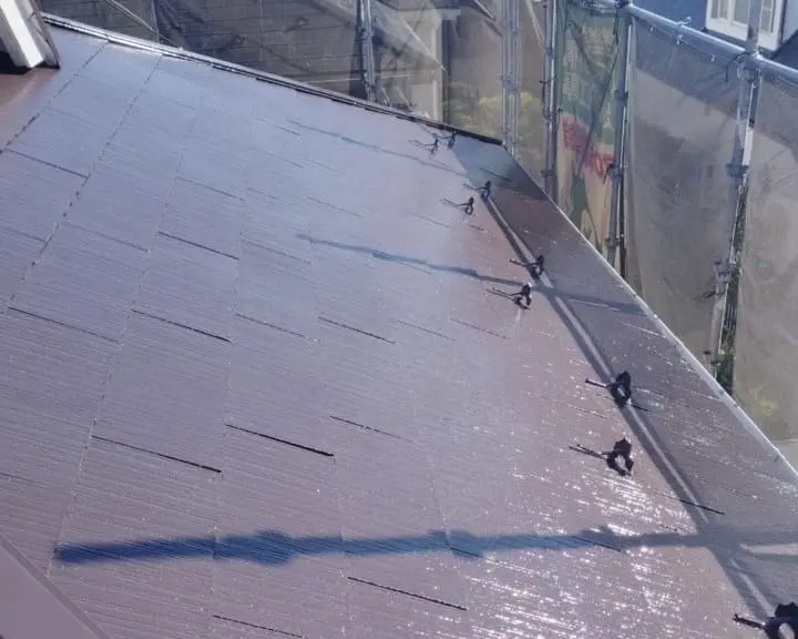 前回で外壁が終わり、屋根の下塗りまでレポートさせて頂きましたので今回は屋根の中塗りからレポートさせて頂きます。