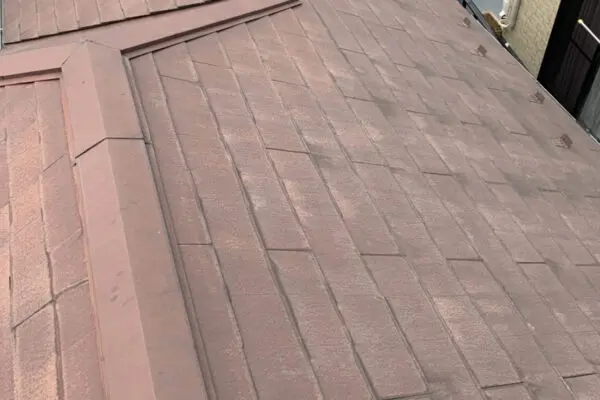 屋根はスレート屋根で施工前はかなりの数のひびや苔や藻といった屋根の汚れ、