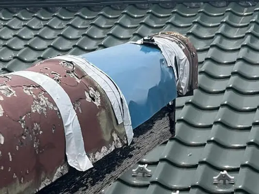 実際雨は漏れていないということでしたが今後の雨に備えて破損してしまった部分だけでなく板金を交換する工事を提案させていただいたところそれでお願いしたいとお返事をいいただきましたので工事をさせていただきました。