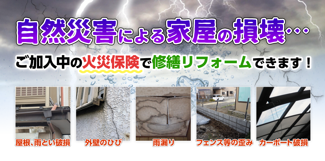 住宅の破損や劣化は、火災保険が認定されるケースが多々あります。