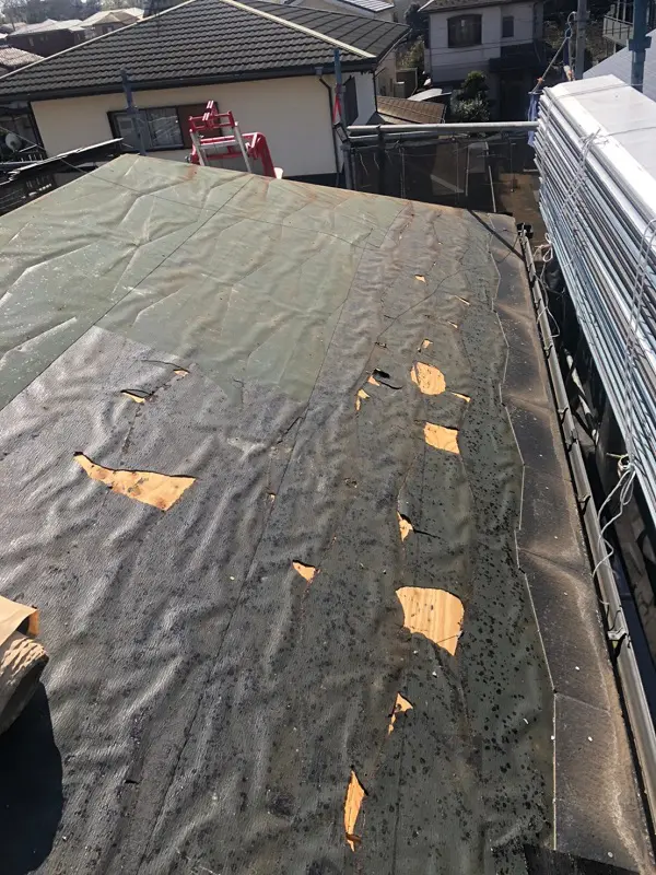 剥がした下には防水シート(ルーフィング)が張ってあります。