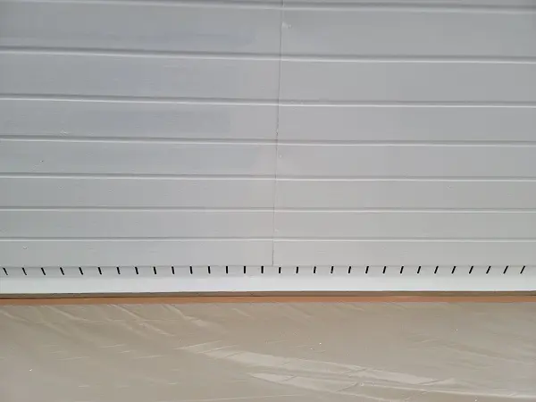 今回の軒天が溝のあるタイプでしたので、下地処理後、先に刷毛で溝を塗装していきました。