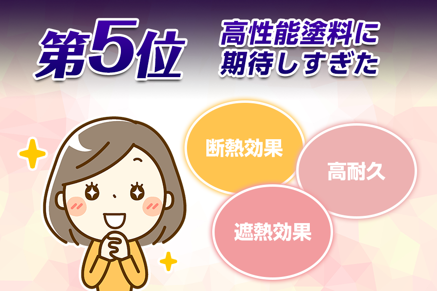 外壁塗装や屋根塗装における失敗例第5位は、高性能塗料に期待しすぎてしまうことです。