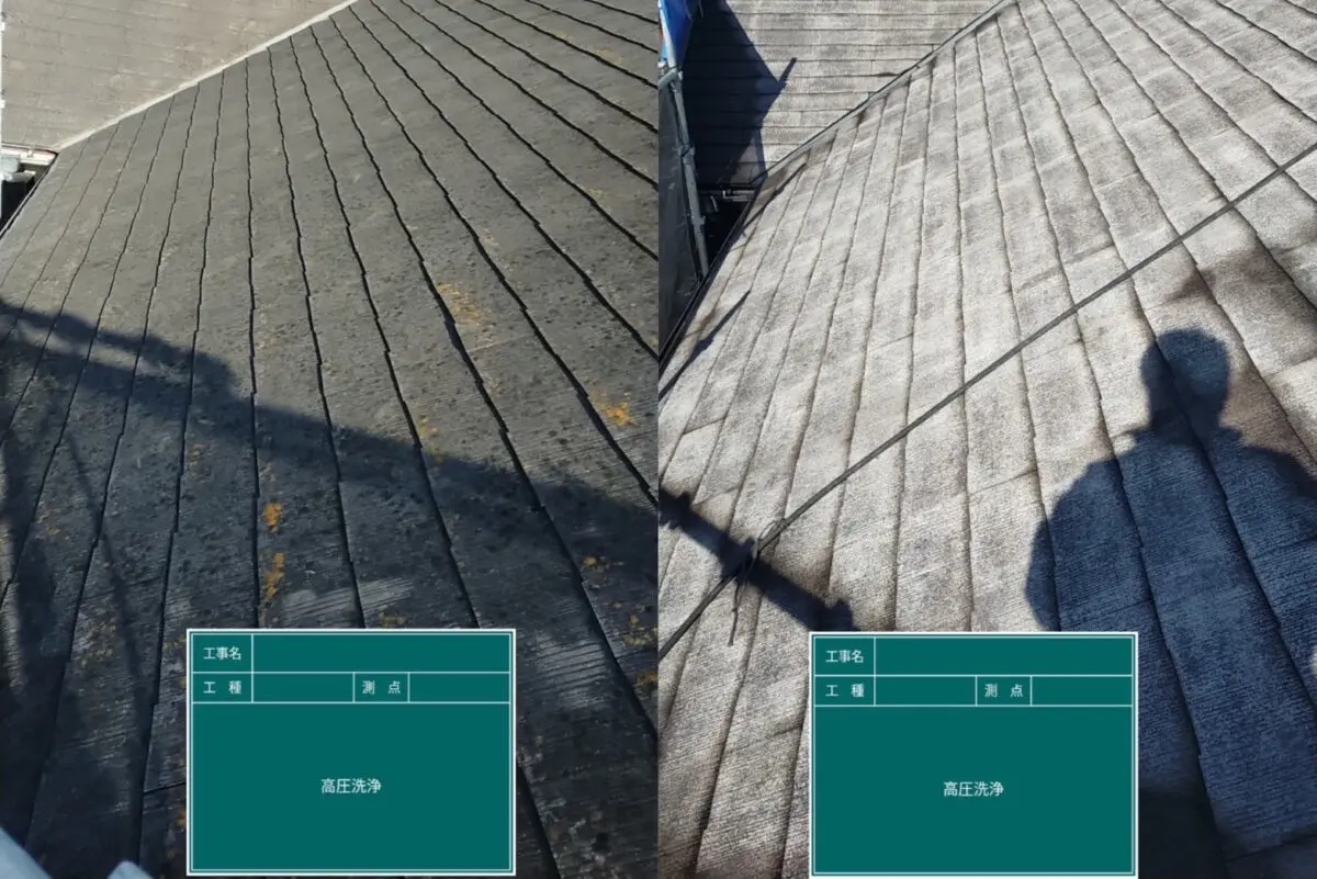 屋根や外壁はもともと汚れにくく撥水性を持っていますがこのように汚れてくると塗膜が劣化してきていることを表します。