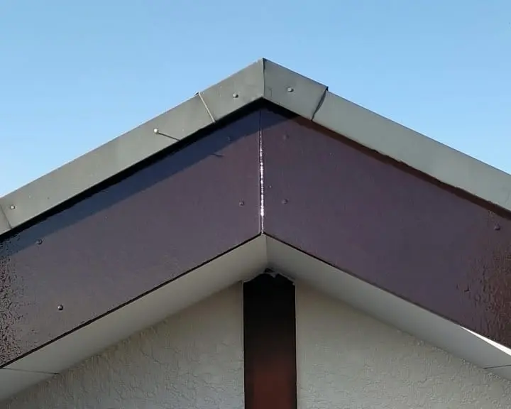 これは隙間があいてしまっていた破風の部分の補修をして塗装した破風の写真です。